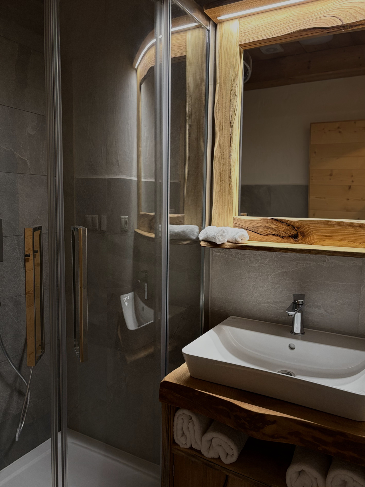 Deluxe izby s prístelkou majú veľkosť 20m2. Izby tohto typu sa nachádzajú na prvom a druhom poschodí, kde vedie klasické schodisko a tiež výťah.
